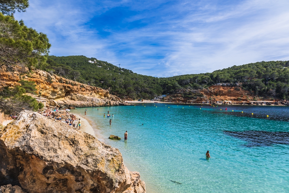 Otra visita obligada son las Playas de Comte, a las que podrás llegar en coche o moto, a tan solo 15 minutos desde San Antonio de Portmany. Son playas y calas bonitas de arena blanca y aguas turquesa, con vistas a las ilsas de Es Bosc, Sa Conillera, Ses Bledes y s’Espartar. ¡Aquí realmente te quedarás sin palabras ante tanta belleza! Estas playas cuentan con un divertido chiringuito donde tomar algo o cenar en el restaurante Es Racó d’en Xic acompañado de una espectacular puesta de sol.